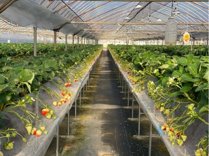 バイオバランス®堆肥を使用し、高設栽培と土耕栽培でイチゴを生産しています。バイオバランス®堆肥を入れ始めた年から、株元(クラウン)や葉の生育が良好になり収量が増えました。高設栽培ではポットごとにバイオバランス®堆肥の施肥量を変え、収量に変化があるかを検証して頂いています。